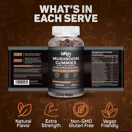 Mushroom Complex Gummies 3000mg - 60 Count Raspberry Flavored